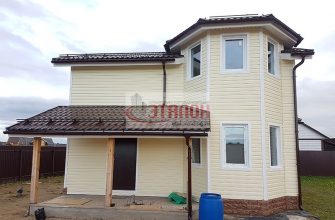 Фотографии обшивки каркасно-щитового дома сайдингом Деке (Docke) Персик с утеплением в пос. Поркузи