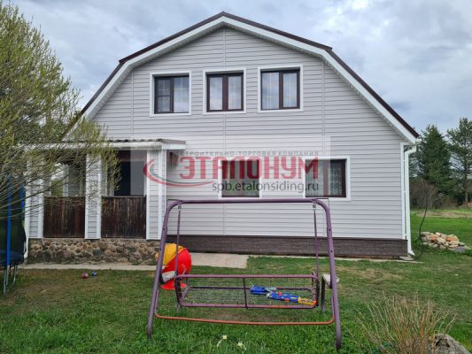 Заказчик выбрал сайдинг Деке формы елочка (в Ленобласти его заказывают редко) цвета Халва.