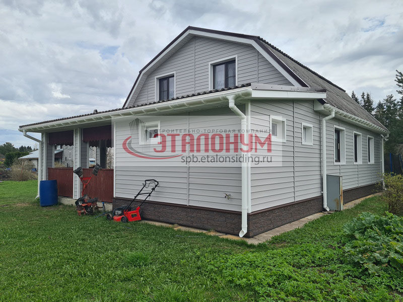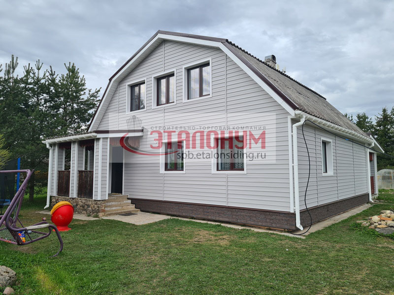 Заказчик выбрал сайдинг Деке формы елочка (в Ленобласти его заказывают редко) цвета Халва.