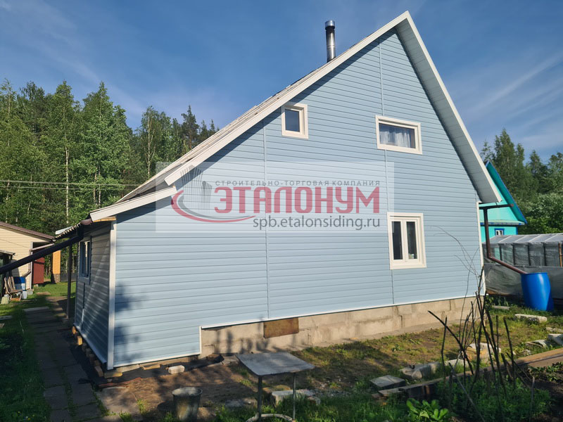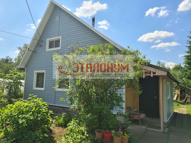 Фотографии обшивки брусового дома сайдингом Деке (Docke) Голубика без утепления в СНТ Дружба