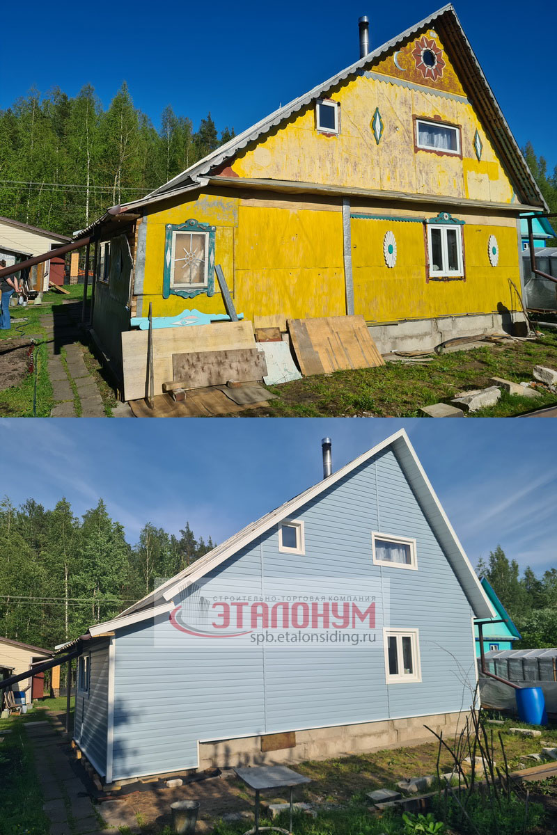 Именно на фото таких домов лучше всего видна разница до и после обшивки сайдингом.