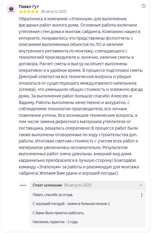 Отзывы о монтаже сайдинга и кровли СТК Эталон